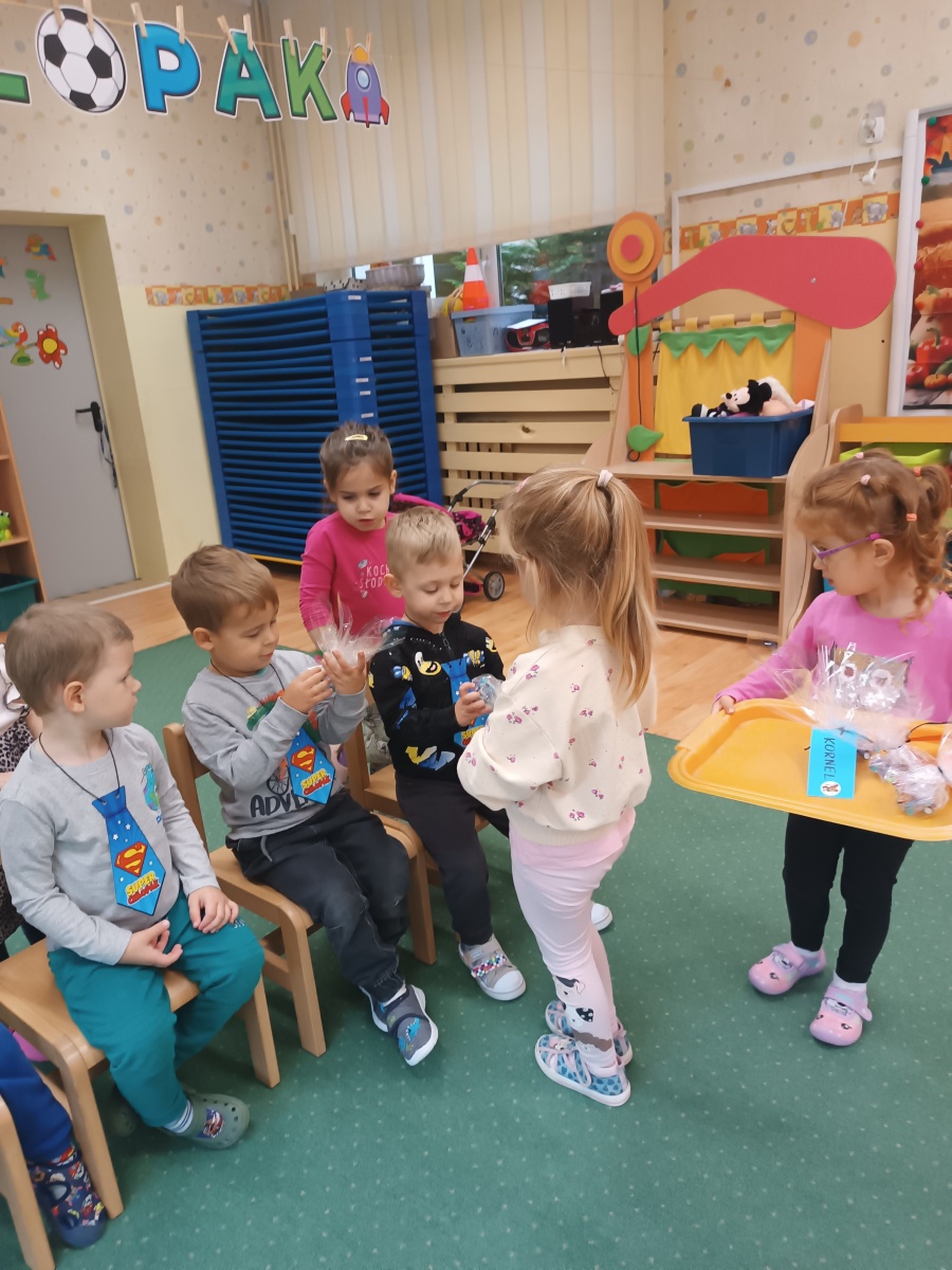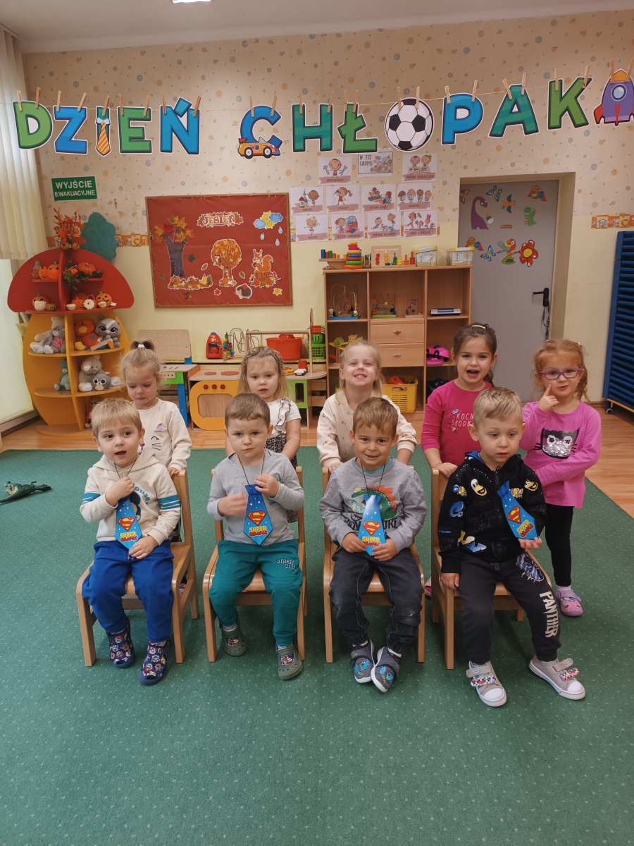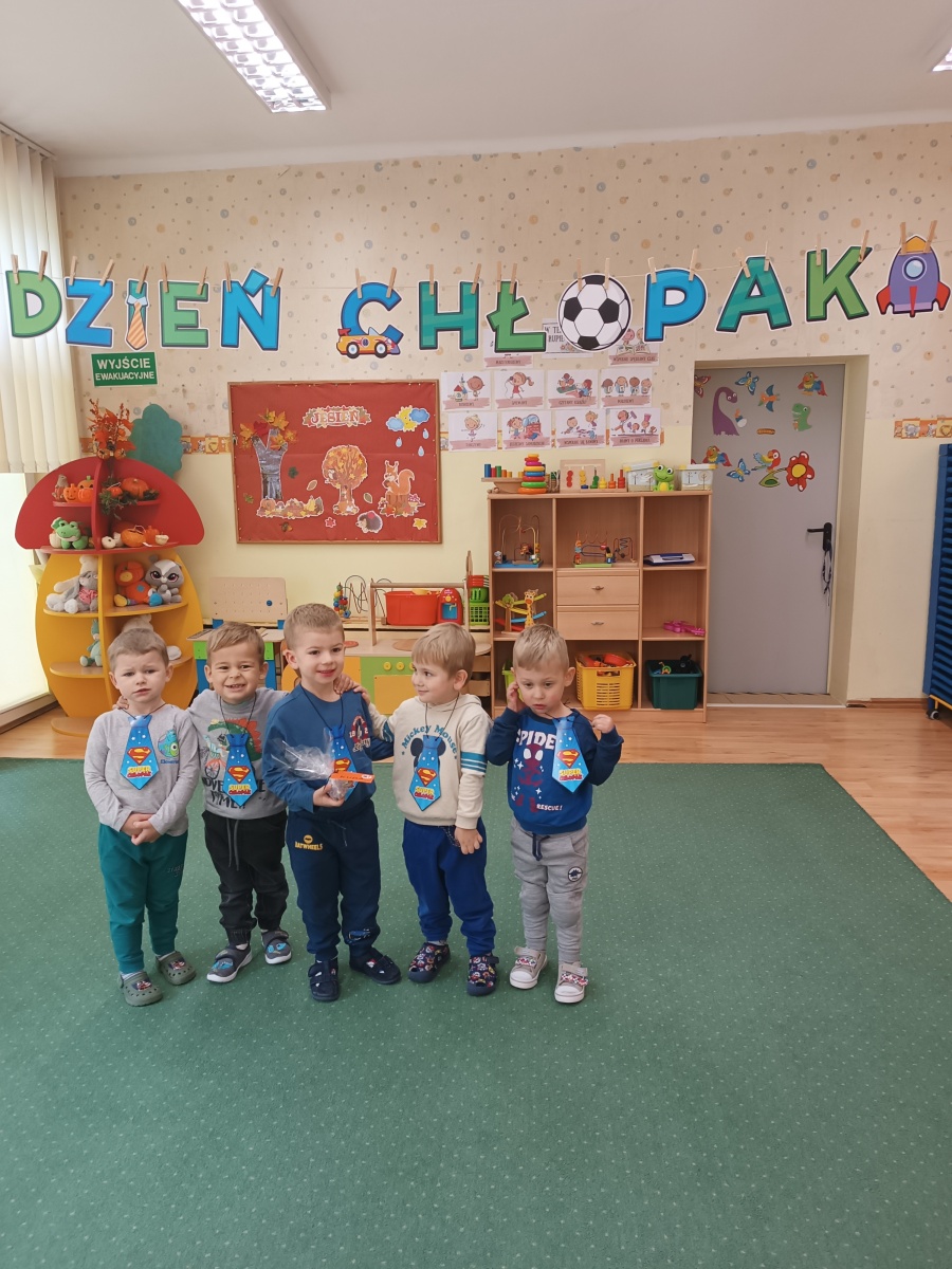 Dzień Chłopaka. Na Dzień Chłopaka dla wszystkich przedszkolaków i najfajniejszych na świecie chłopaków, prawdziwe życzenia: niech Wam się spełniają wszystkie marzenia! Dzień wypełniony atrakcjami i zabawami, a na koniec chłopcy zostali obdarowani przez dziewczynki krawatami i drobnymi upominkami.