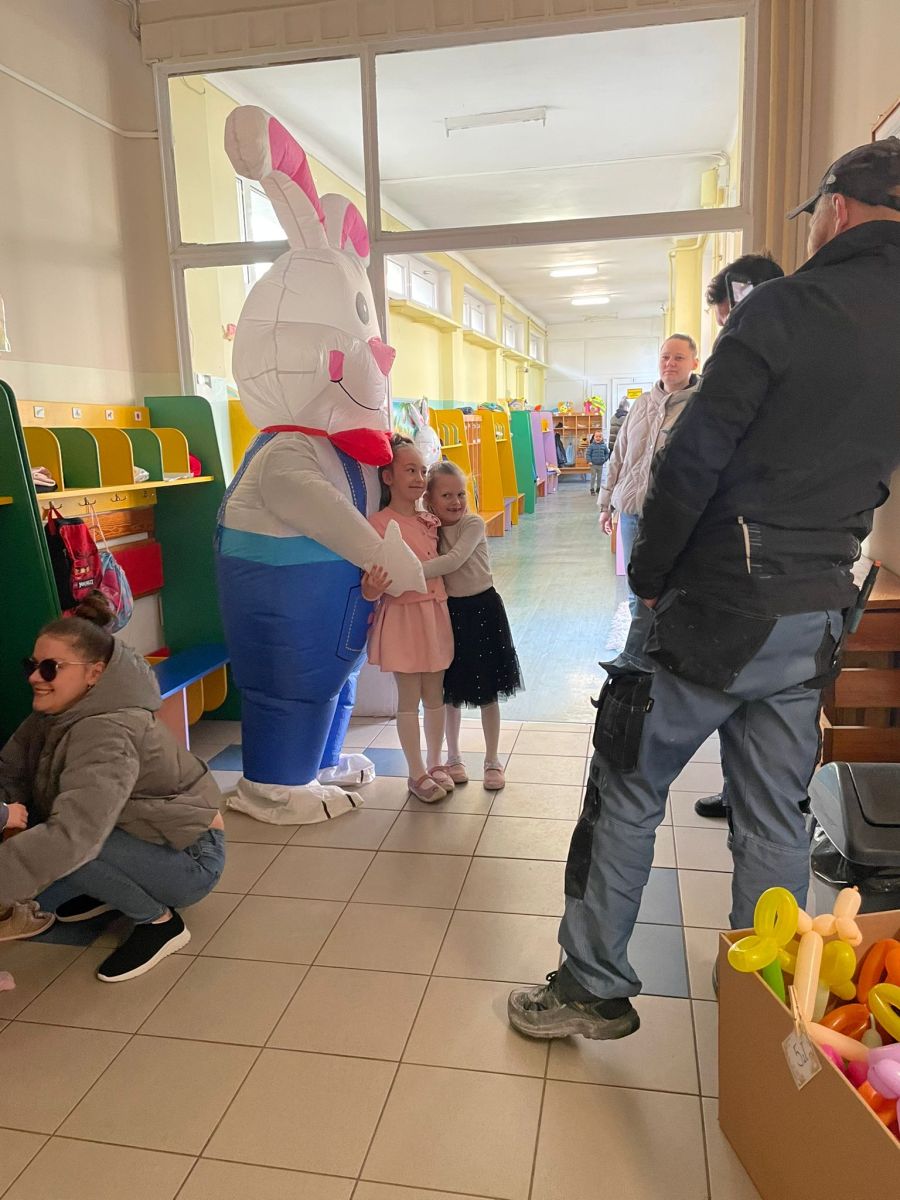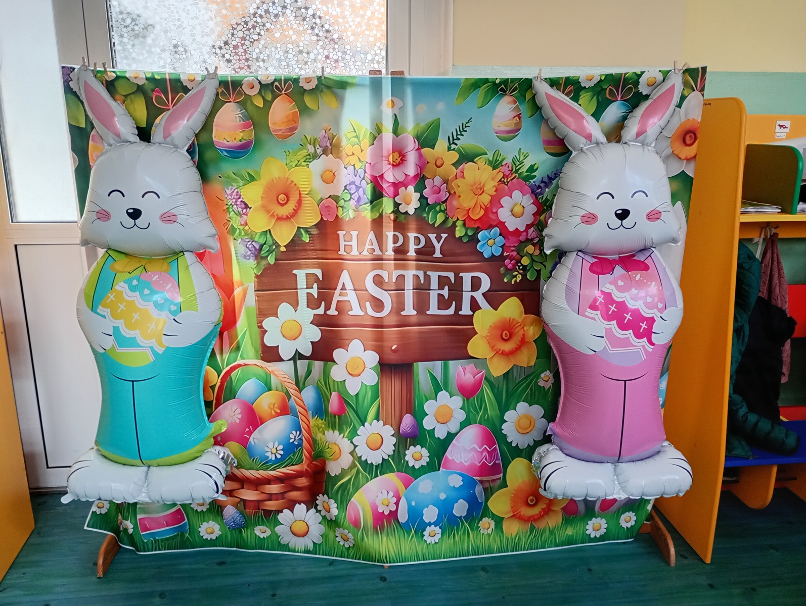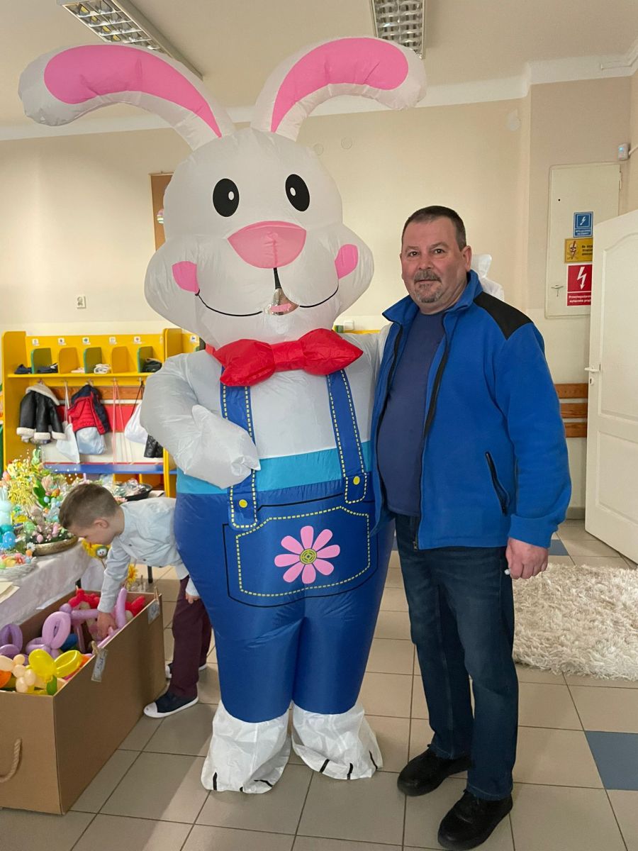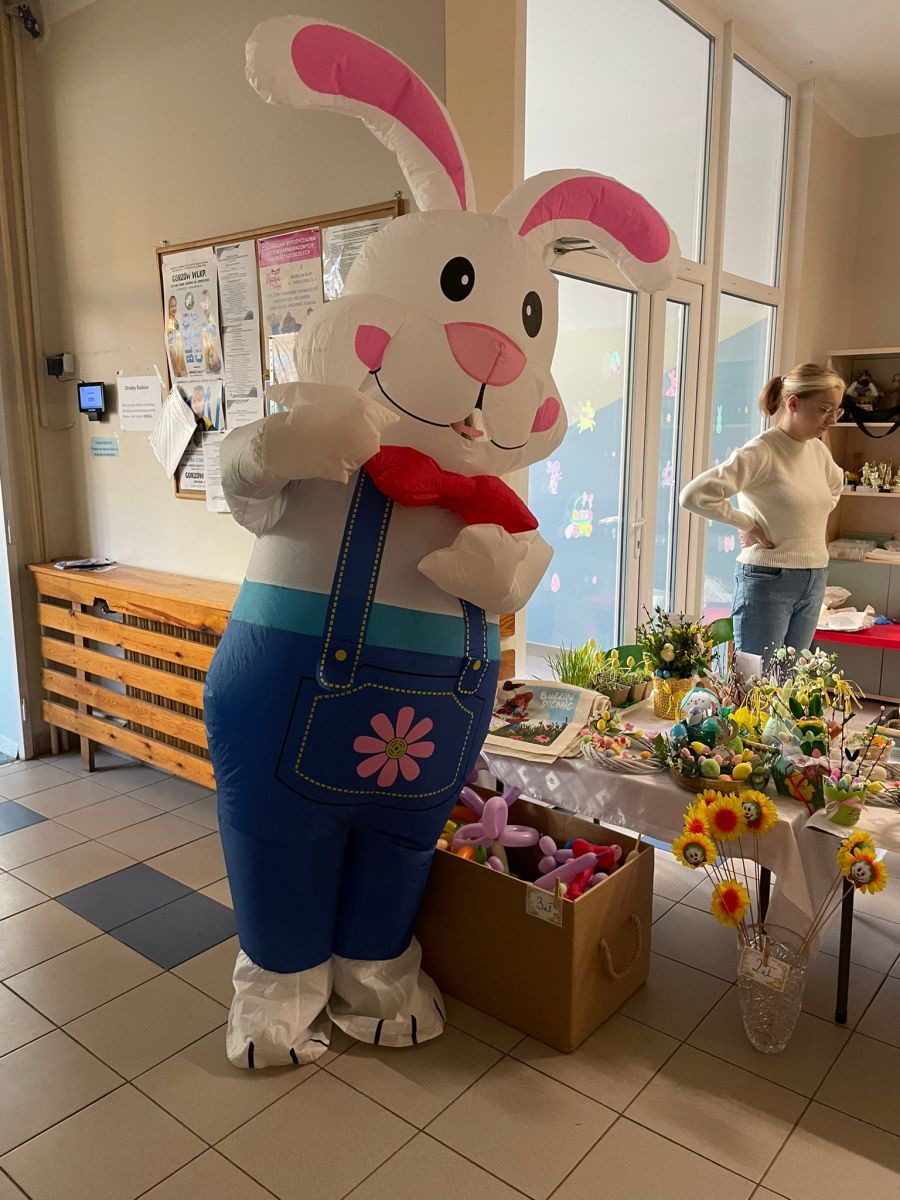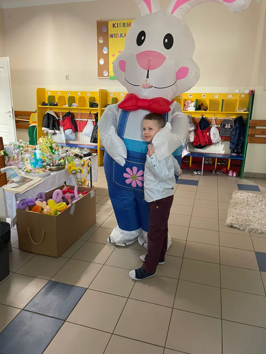 Każdego poranka na odwiedzających czekała miła niespodzianka – rodziców oraz przedszkolaków witał wielkanocny Zajączek, z którym dzieci chętnie robiły sobie pamiątkowe zdjęcia. 🐰📸