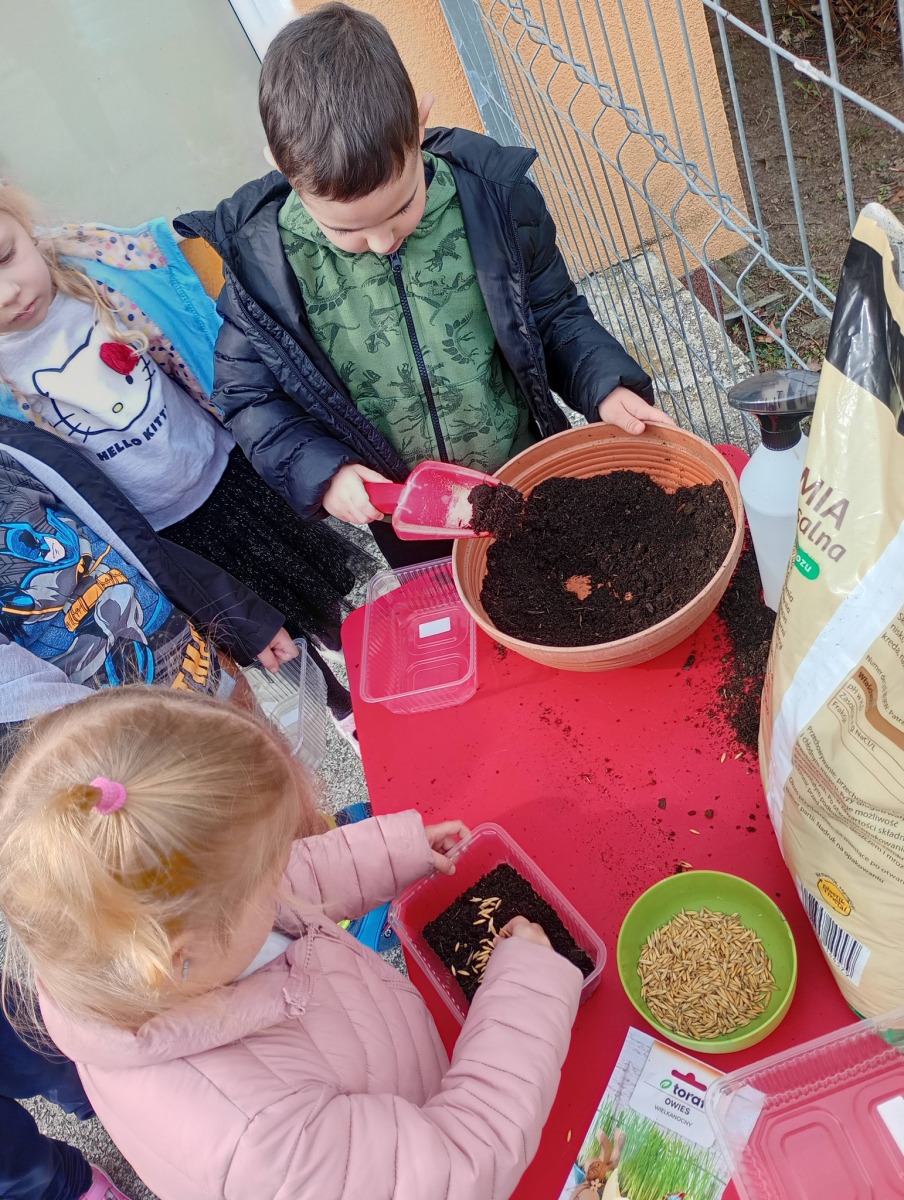 Po powrocie do przedszkola przystąpiliśmy do działania! Przedszkolaki z wielkim zaangażowaniem wysiały owies, ucząc się przy tym, jak dbać o rośliny i obserwować ich wzrost. 🌾