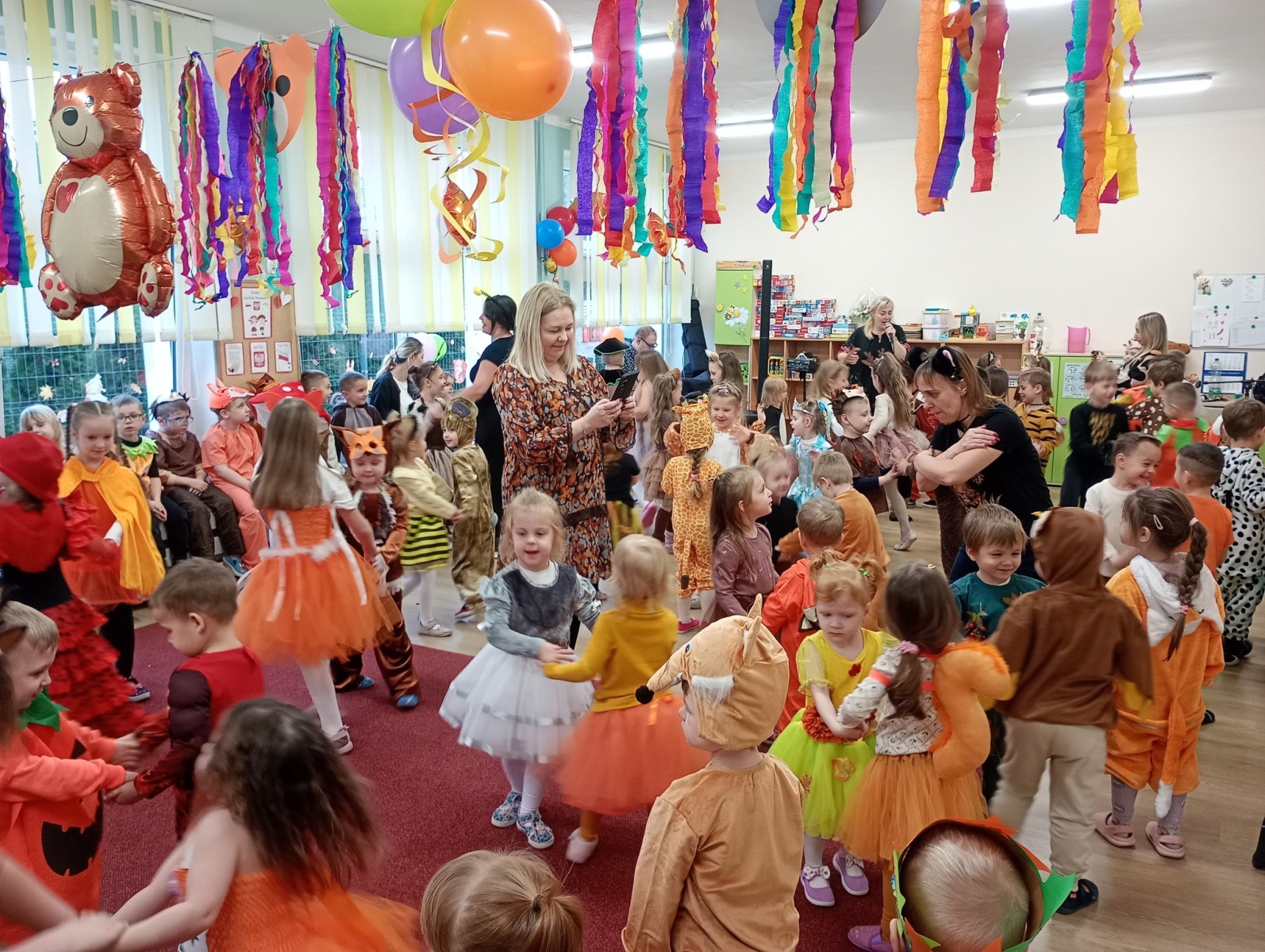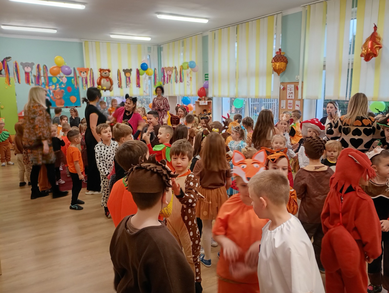 W naszym przedszkolu odbył się radosny i kolorowy Bal u Misia Uszatka, w którym wzięły udział wszystkie grupy przedszkolne. Tego dnia sala wypełniła się uśmiechami, muzyką i wspaniałą atmosferą wspólnej zabawy.