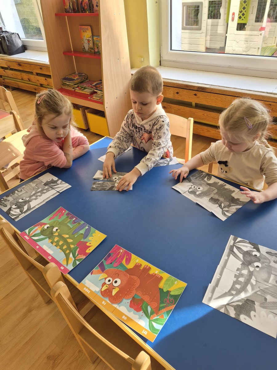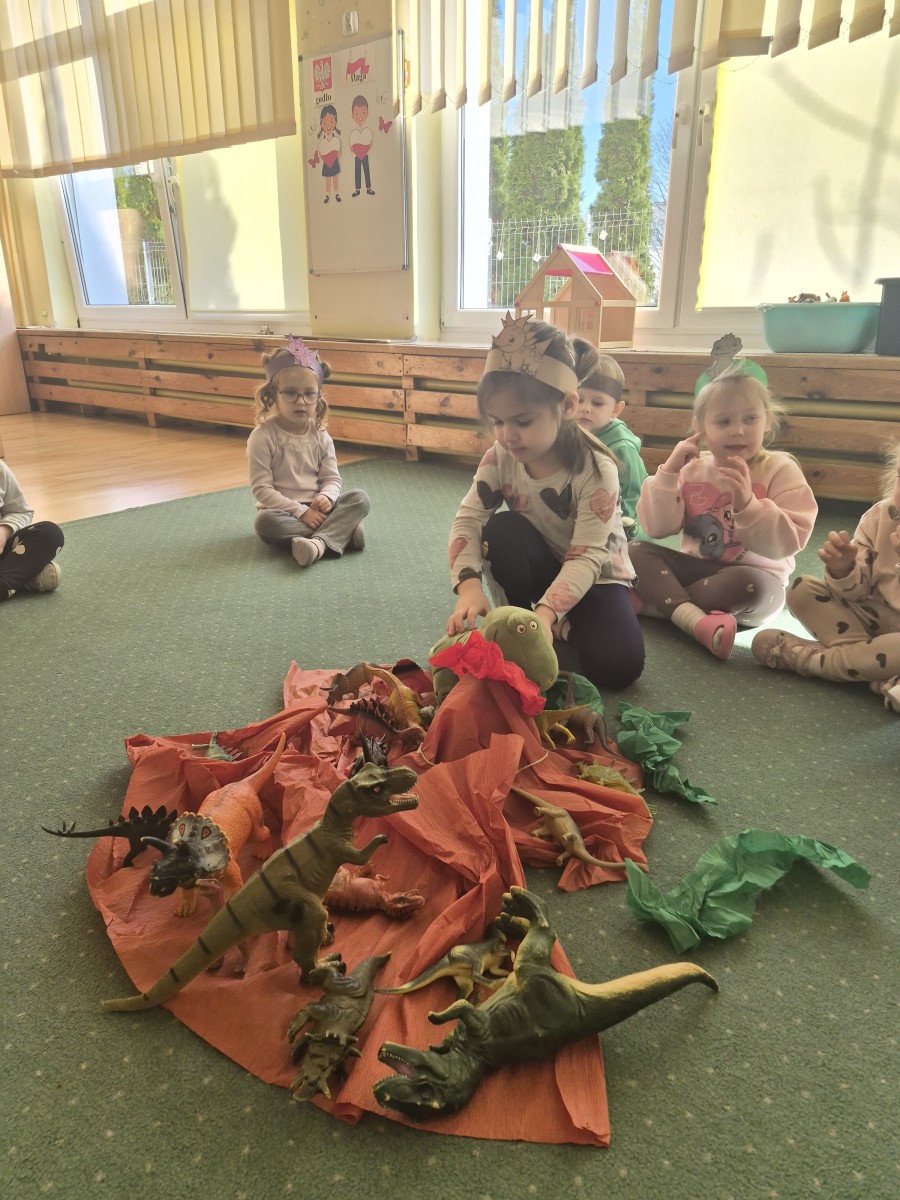 22 marca 2026 Dzień Dinozaura Dzieci przeniosły się w prehistoryczny świat poznając różne gatunki dinozaurów i ciekawostki z ich życia. Odbyły się również dinozaurowe zabawy muzyczno – ruchowe, układanie puzzli oraz dobieranie obrazków do pary.