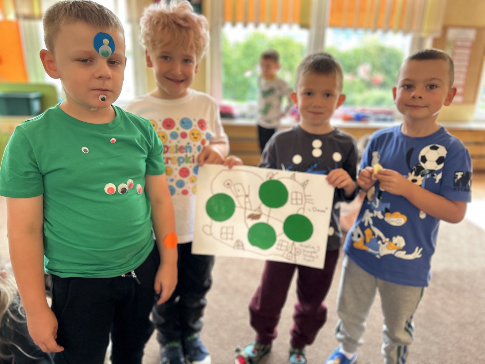 9 lutego 2026 „Dzień kropki” ◄ 1 2 Tego Dnia obchodziliśmy Dzień Kropki Dzieci rozpoznawały figury geometryczne, wybierały z wszystkich figur koło. Tworzyły arcydzieła z figurą feometryczną- kołem .
