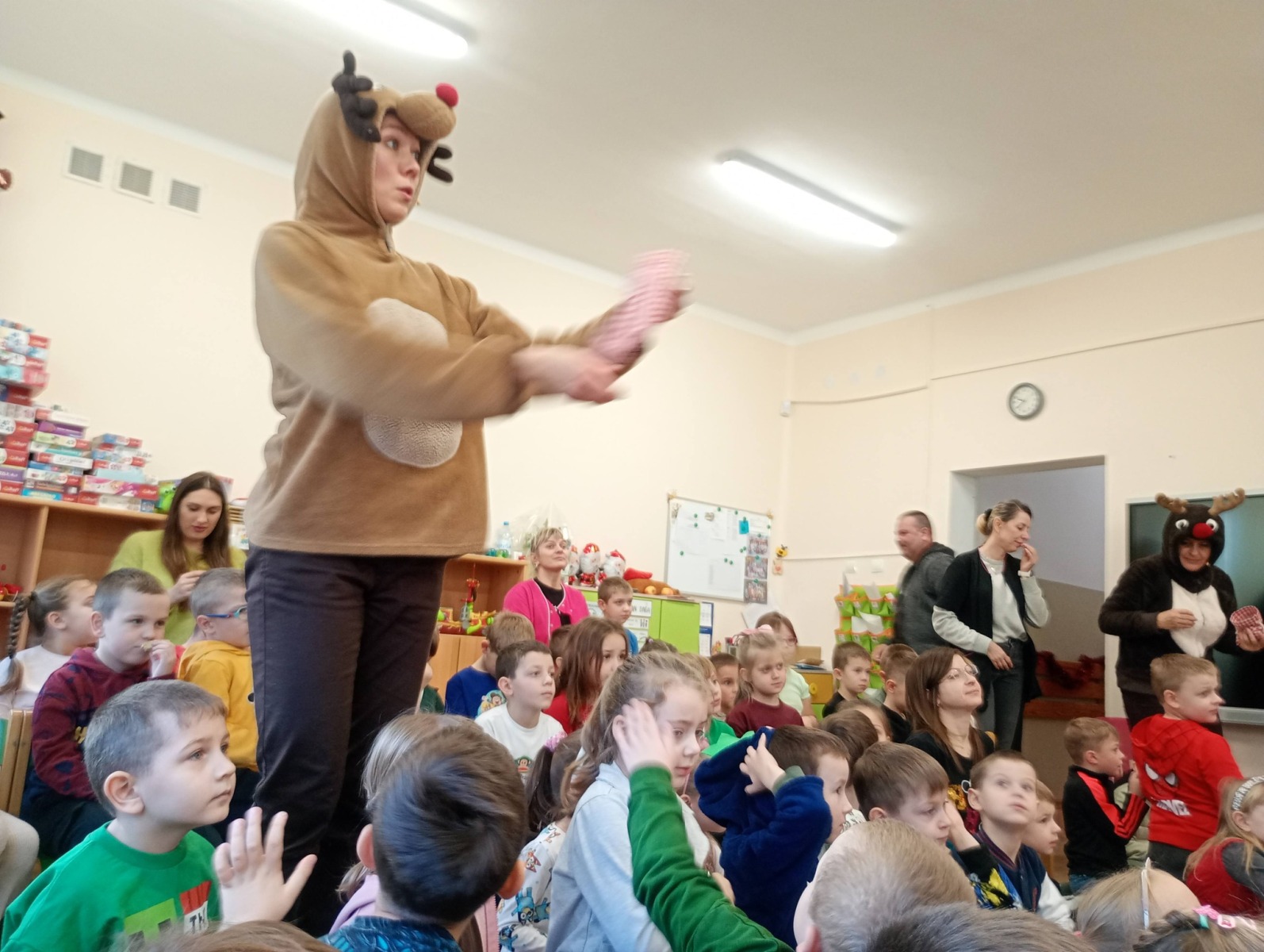 11 grudnia 2025 ” Kłopoty św. Mikołaja” -teatr w naszym przedszkolu Dzisiaj nasze przedszkole odwiedził Teatr Rozmaitości GWITAJCIE Dzieci z wielką radością obejrzały spektakl ” Kłopoty św. Mikołaja”