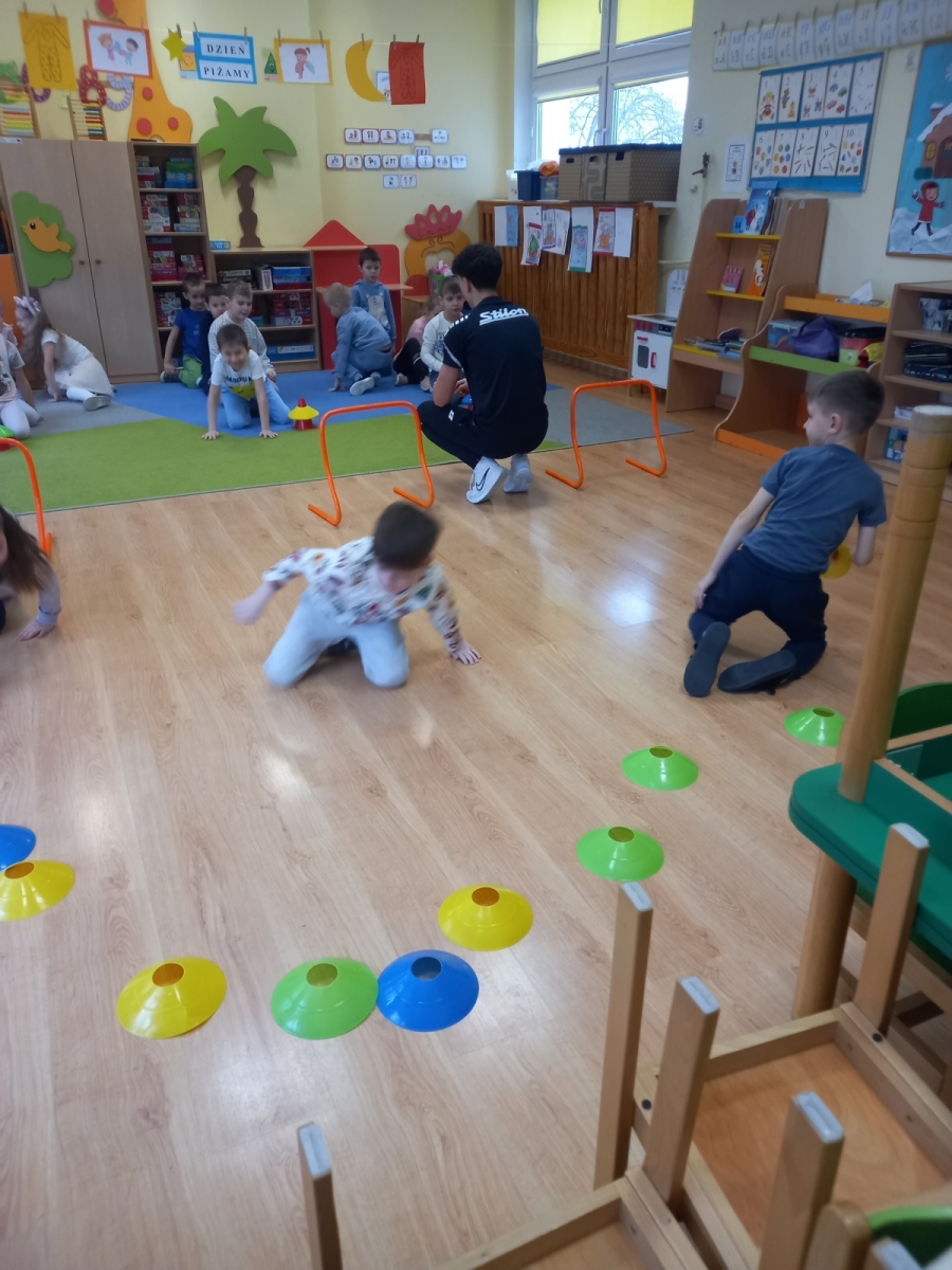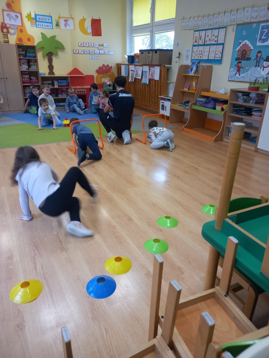12 lutego 2026 KOTKI V ZAJĘCIA SPORTOWE Zajęcia sportowe ze ,,Stilonem””-było wesoło, ćwiczyliśmy z piłką, uczyliśmy się współpracy.