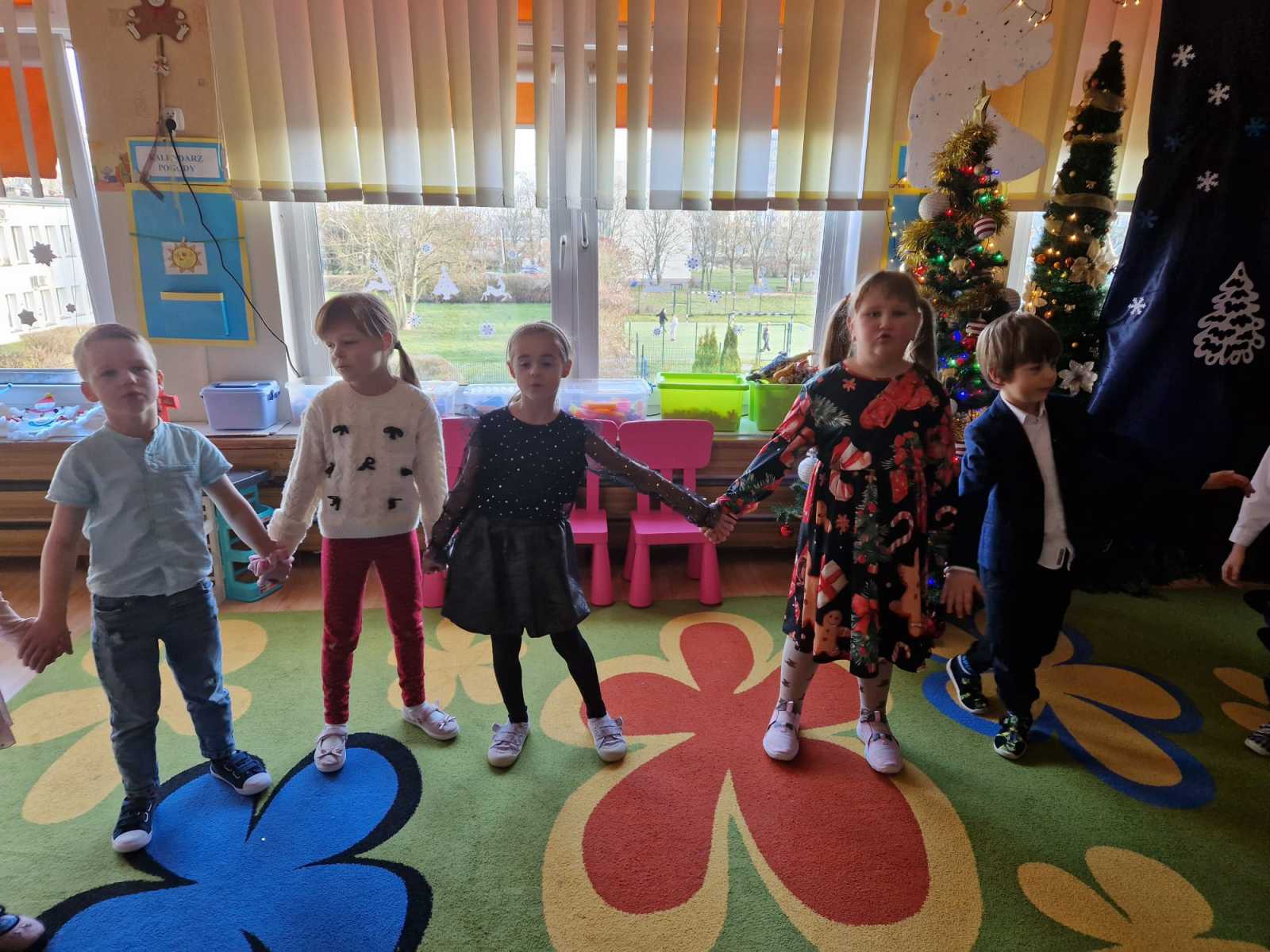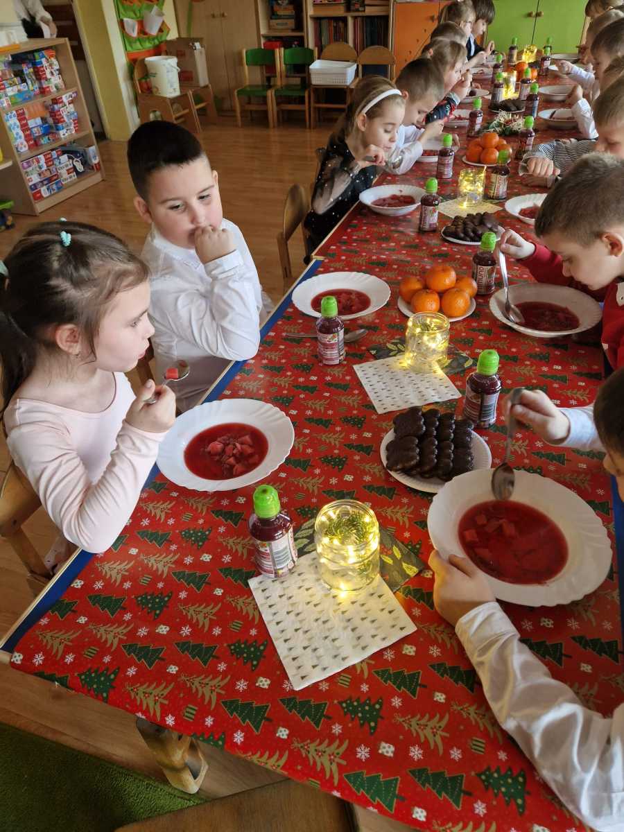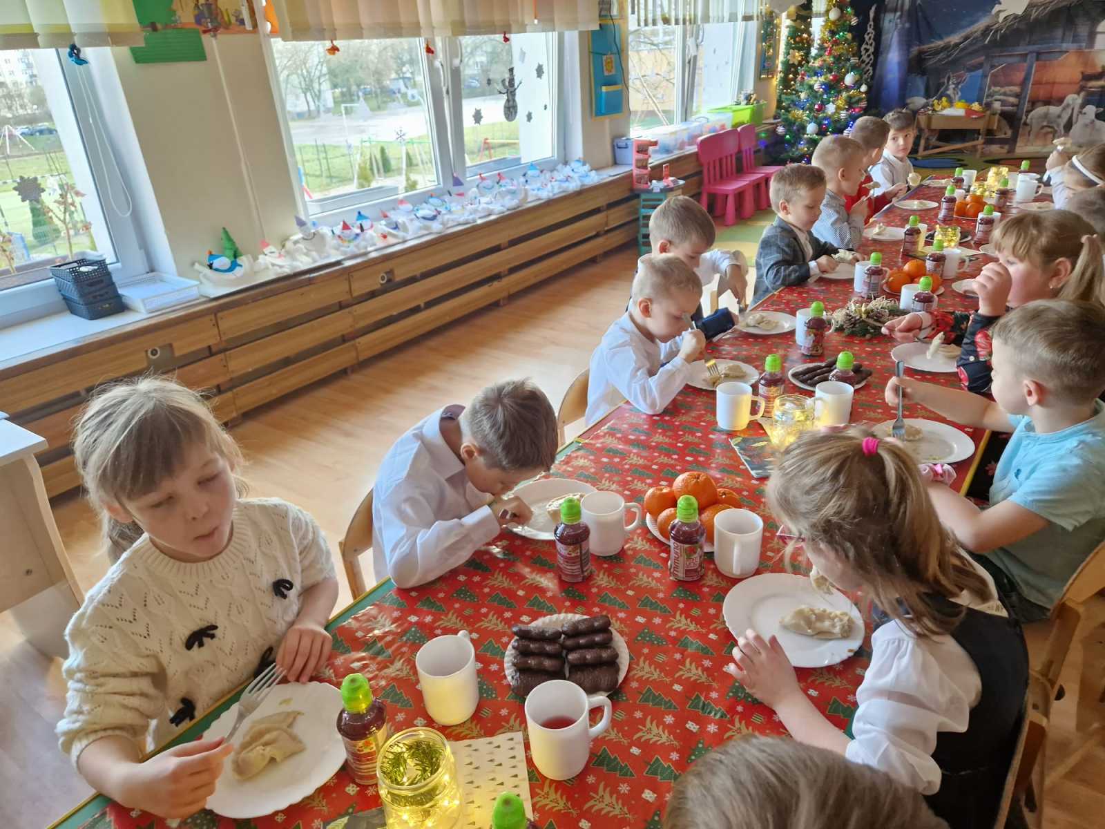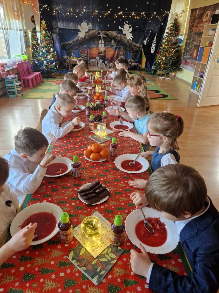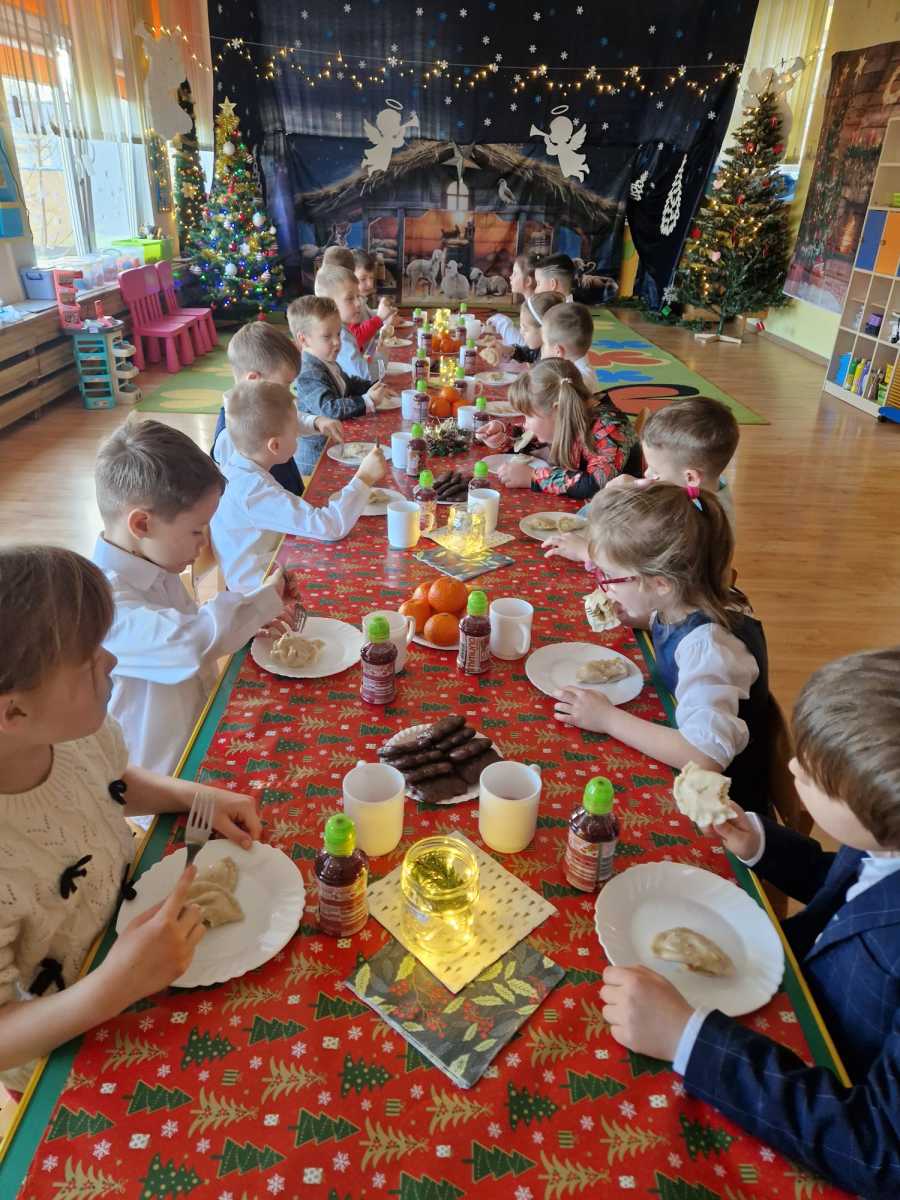 9 lutego 2026 Wigilia- grupa Biedronki W naszej grupie zorganizowaliśmy Wigilię, w czasie której składaliśmy sobie świąteczne życzenia dzieląc się opłatkiem, jedliśmy wigilijne potrawy i śpiewaliśmy kolędy.