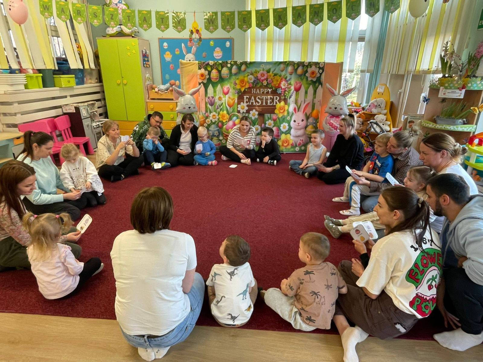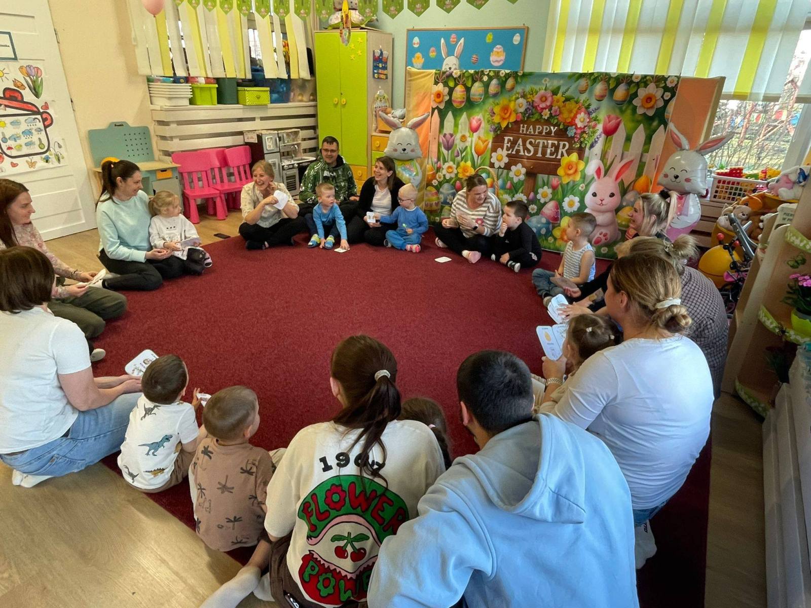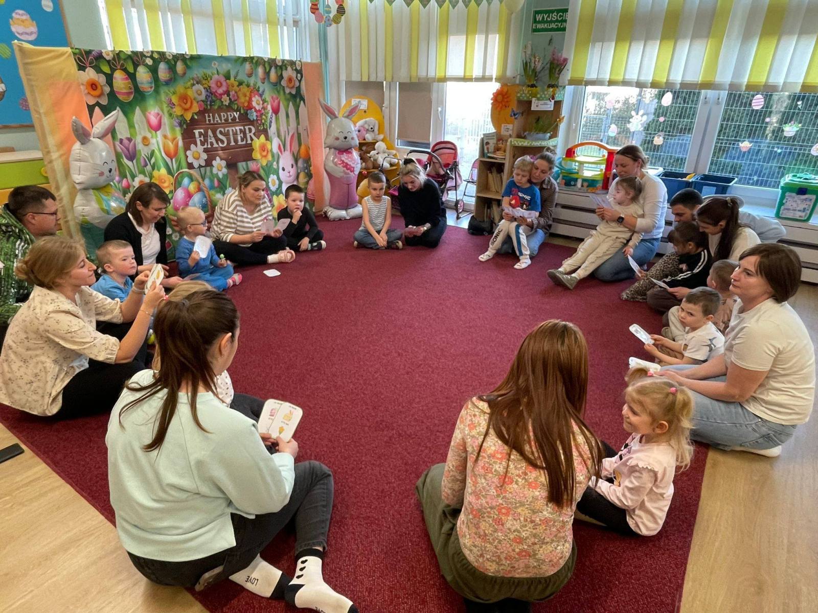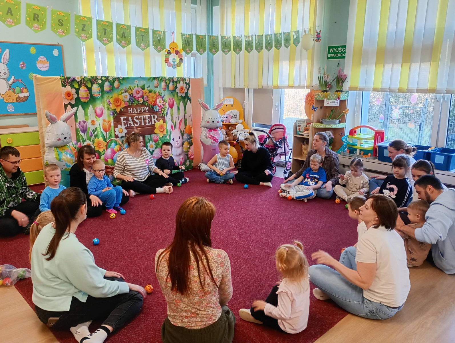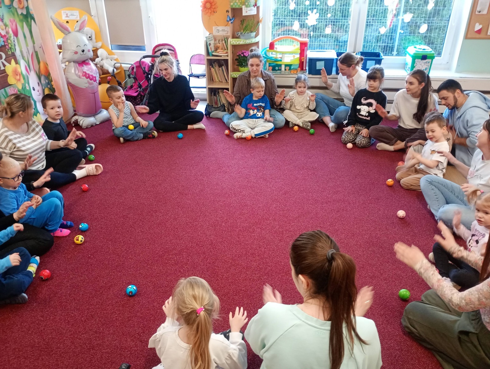 Podczas spotkania nie zabrakło wspólnej zabawy – dzieci i rodzice chętnie brali udział w różnych aktywnościach, śpiewali piosenki i spędzali czas w serdecznej, rodzinnej atmosferze.